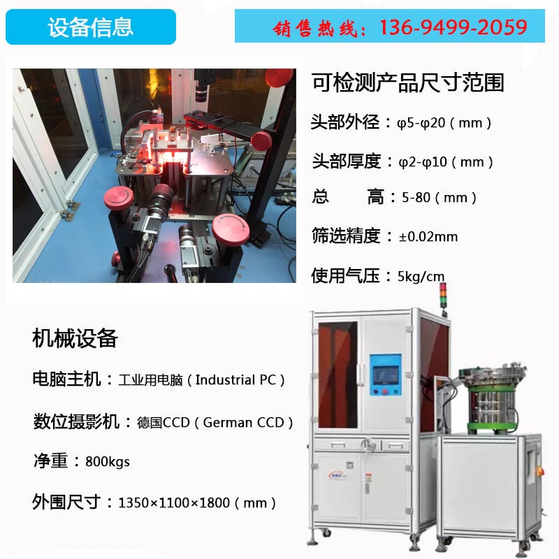 检测产品的头部直径、多段高度头厚 |
